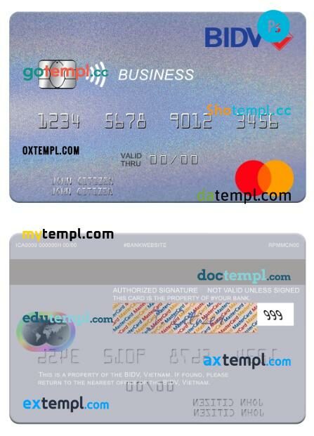Vietnam BIDV business mastercard template in PSDÂ format