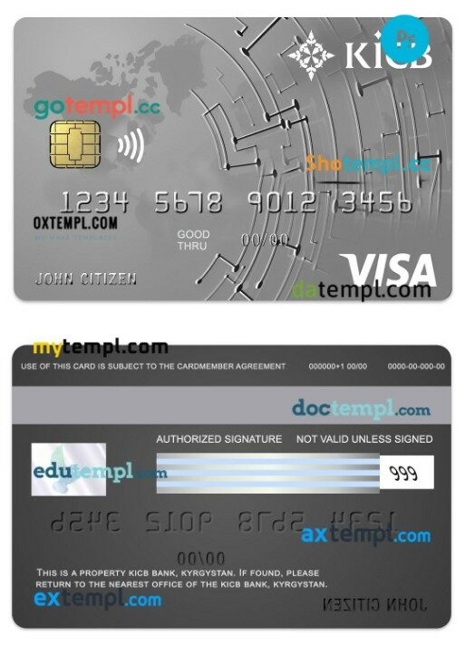 Uzbekistan KDB Bank visa classic card template in PSD format