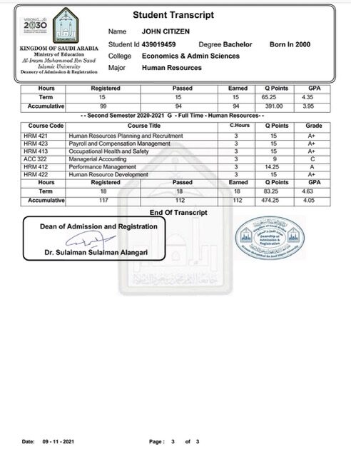 A university transcript is an official record of a student’s academic performance at a college or university. It typically includes: