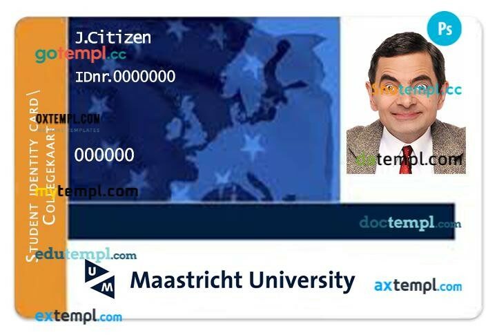Maastricht University student ID editable template.